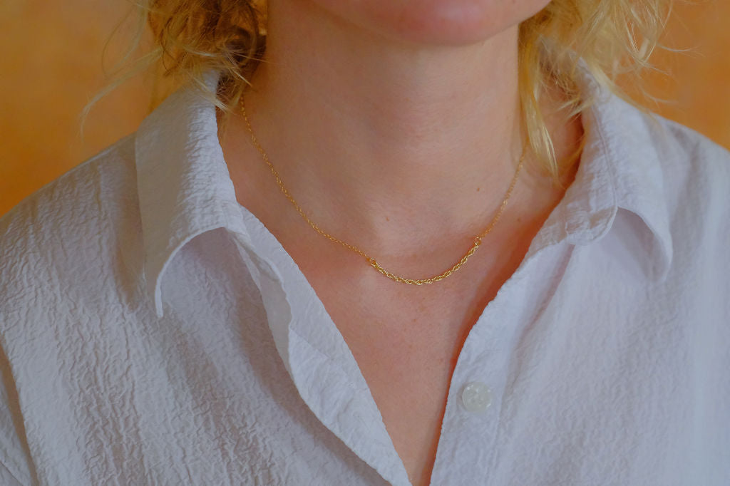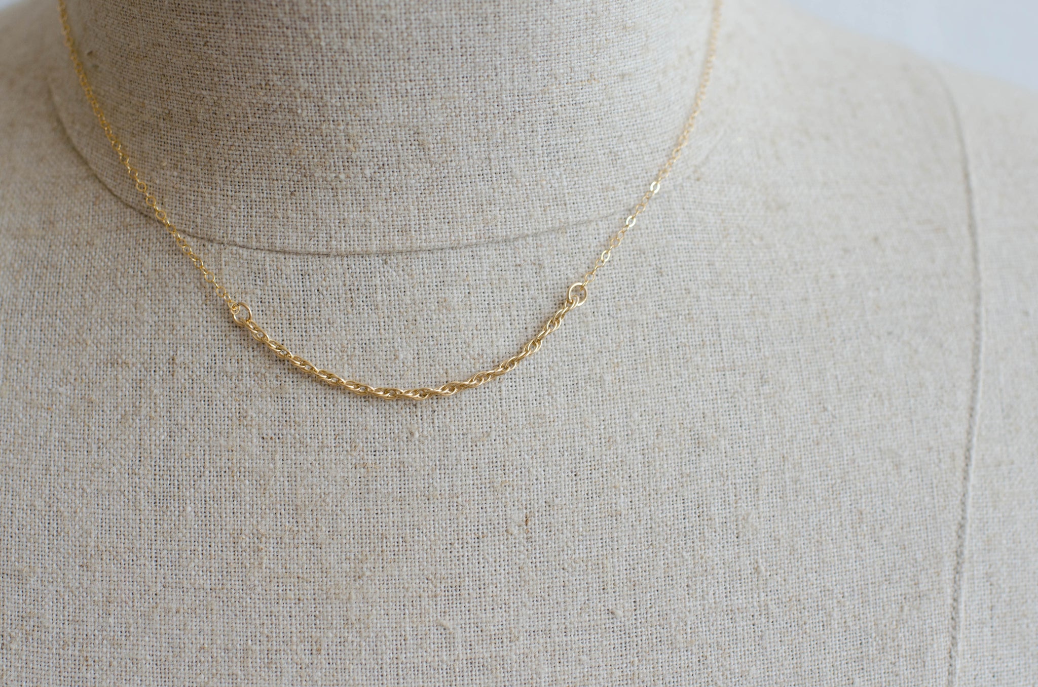 simple, dainty necklace composed of 14k gold filled link chain and contrasting chunky rope chain.